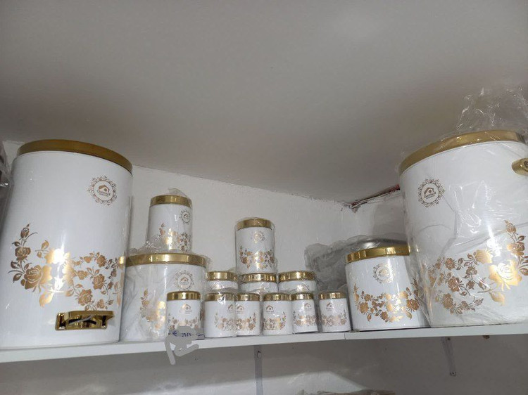 ▪️این سرویس شامل 1 عدد سطل برنج(۲۰ لیتری) ، 1 عدد سطل زباله ( ۱۲ لیتری ) ،1 عدد سطل قند(7 لیتری) ، 1 عدد سطل شکر(7 لیتری) ، 6عدد بانکه ادویه کوچک ، 6عدد بانکه (۱ کیلویی) میباشد